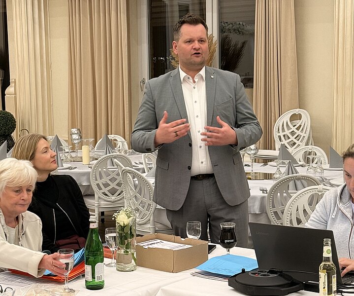 Einen inhaltlichen Schwerpunkt bildete der Bericht des Landtagsabgeordneten Christian Berger. In seinem Beitrag ging er ausführlich auf aktuelle politische Entwicklungen in Nordrhein-Westfalen ein und erläuterte zentrale Herausforderungen, vor denen das Land steht. Dabei spannte er den Bogen von wirtschaftspolitischen Themen über Infrastrukturfragen bis hin zur Bedeutung einer starken kommunalen Ebene. Besonders betonte er die enge Verzahnung zwischen Landes- und Kommunalpolitik sowie die Rolle engagierter Parteimitglieder vor Ort.